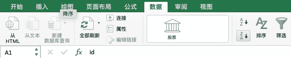 回到需要处理数据的工作表中(Sheet1,请原谅译者的懒惰!),通过鼠标点击"id"所在的 A 列(列标)来选中整个"id"列(图 F3-7,在之后文中采用"选中"来表示选择一行或者一列)。