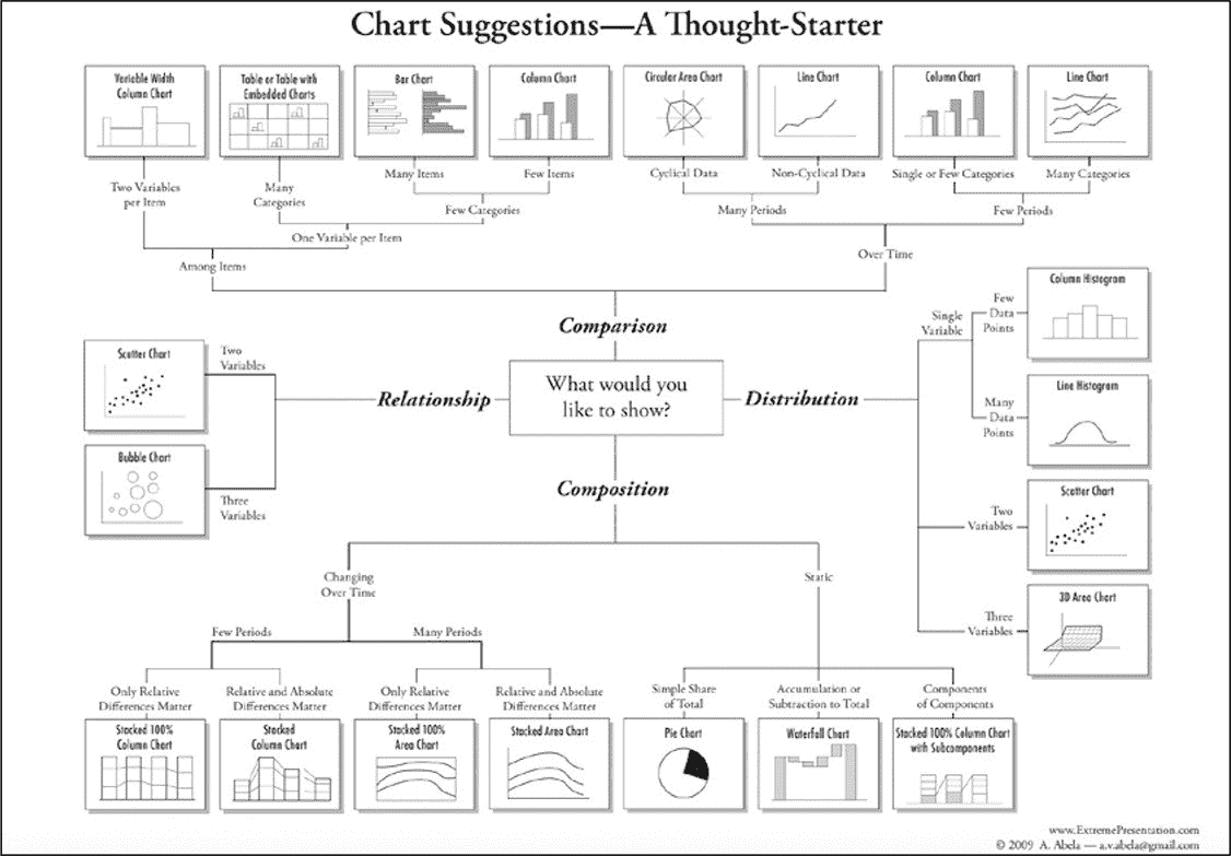 选择正确的图表有时候很困难,但学者和图形编辑已经开发了许多指南。其中一个是:"Chart